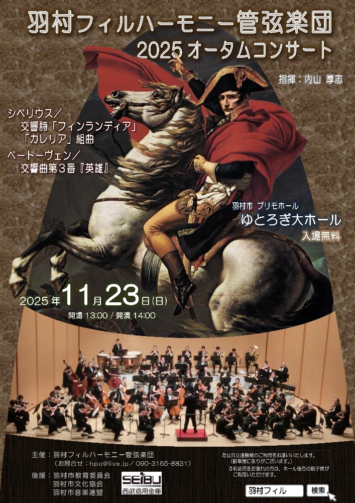 羽村フィルハーモニー管弦楽団(羽村フィル)は、 岸本正武氏(現 羽村フィル名誉団長)を中心に、東京都西多摩郡羽村町(当時、現在羽村市)を本拠地として、1990年12月に誕生したアマチュアオーケストラ団体です♪半年ごとに開催する演奏会に向けて,毎週の練習活動に励んでいます。♫